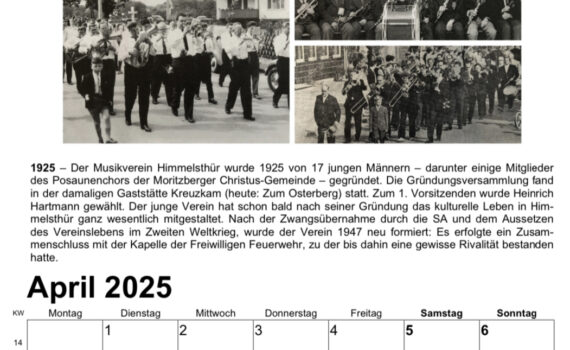 Unter dem Titel „Himmelsthür – Geschichte und Geschichten“ gibt der Ortsrat für das Jahr 2025 wieder einen Jahreskalender heraus. Die zwölf Monatsblätter enthalten geschichtliche Fotos und kurze erläuternde Texte. Dabei orientiert sich die Bildauswahl an runden Jahrestagen der dargestellten Ereignisse. So stellt zum Beispiel das Kalenderblatt im April 2025 die […]
